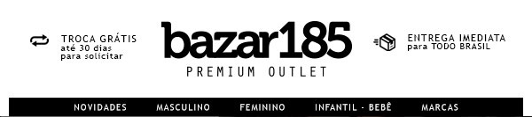 Continue recebendo nossas novidades: insira o e-mail novidades@news.bazar185.com.br a sua lista de remetentes confiáveis. As condições divulgadas neste e-mail são válidas enquanto durarem os estoques e estão sujeitos a alterações sem aviso prévio. |